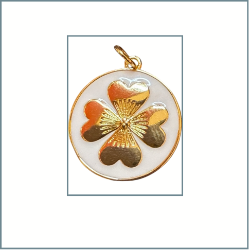 White Enamel 4 Leaf Clover Charm